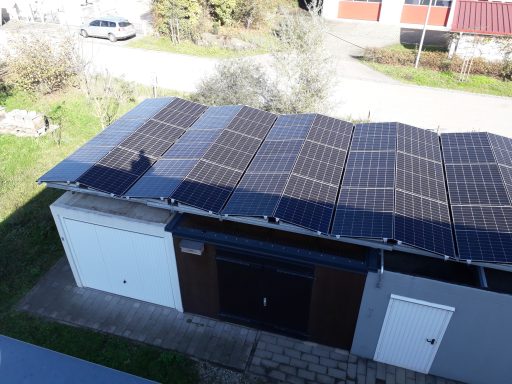 Seit 2022 erzeugen wir auf unseren Garagen einen Großteil unseres Stroms selbst mit unserer Photovoltaik-Anlage.